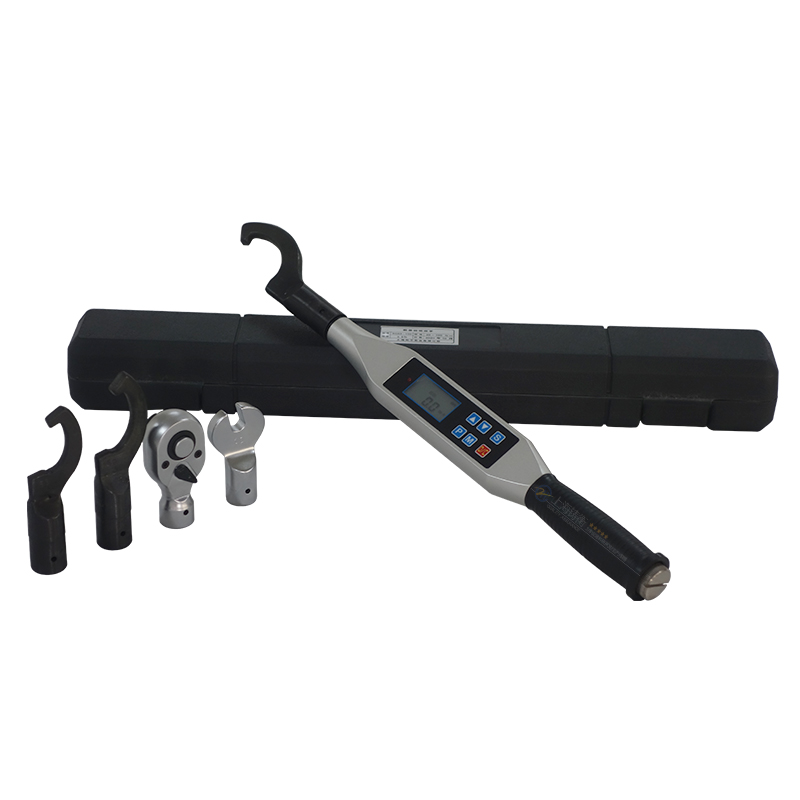 數(shù)顯扭力扳手是一種帶有扭矩測量機(jī)構(gòu)的擰緊計量工具,它用于緊固螺栓和螺母,并能測出擰緊時的扭矩值,扭力扳手等級分為七個等級,等級越高精度就越低,鑄衡廠家生產(chǎn)的SGSX系列軸承螺母安裝扭力扳手精度等級為高精度1級,采用微處理器數(shù)字化處理技術(shù),核心是應(yīng)變計傳感器.該數(shù)顯扳手高精度求值,性能穩(wěn)定,耗電量小,使用方便,本司電子數(shù)字扭力扳手具有示值,峰值保持,預(yù)置報警,三種單位自動轉(zhuǎn)換,扳手頭可換,欠壓顯示,不使用時3分鐘自動斷電等功能.,其適用于汽車、摩托車、機(jī)械制造等行業(yè)的螺栓緊固檢測及控制等。頭部可另配開口頭、活動開口頭、勾頭、梅花頭、管鉗頭,外六角套筒、內(nèi)六角套筒、套筒加長桿、特殊定制頭部等。